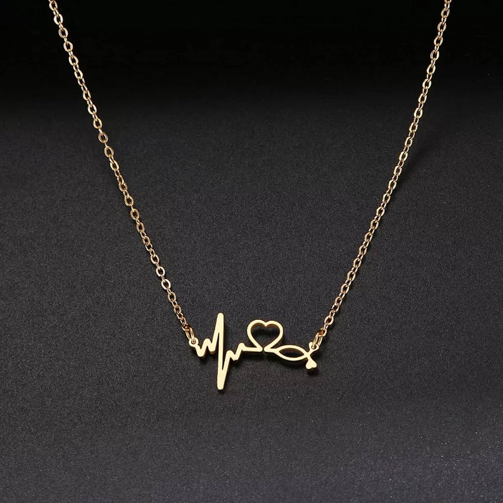 Necklace Pendant Jewellery Stethoscope Heartbeat A heartbeat stethoscope pendant features a stylized heartbeat line intertwined with the design. This type symbolizes the life-saving nature of the medical profession and adds a dynamic and symbolic touch to the pendant.
