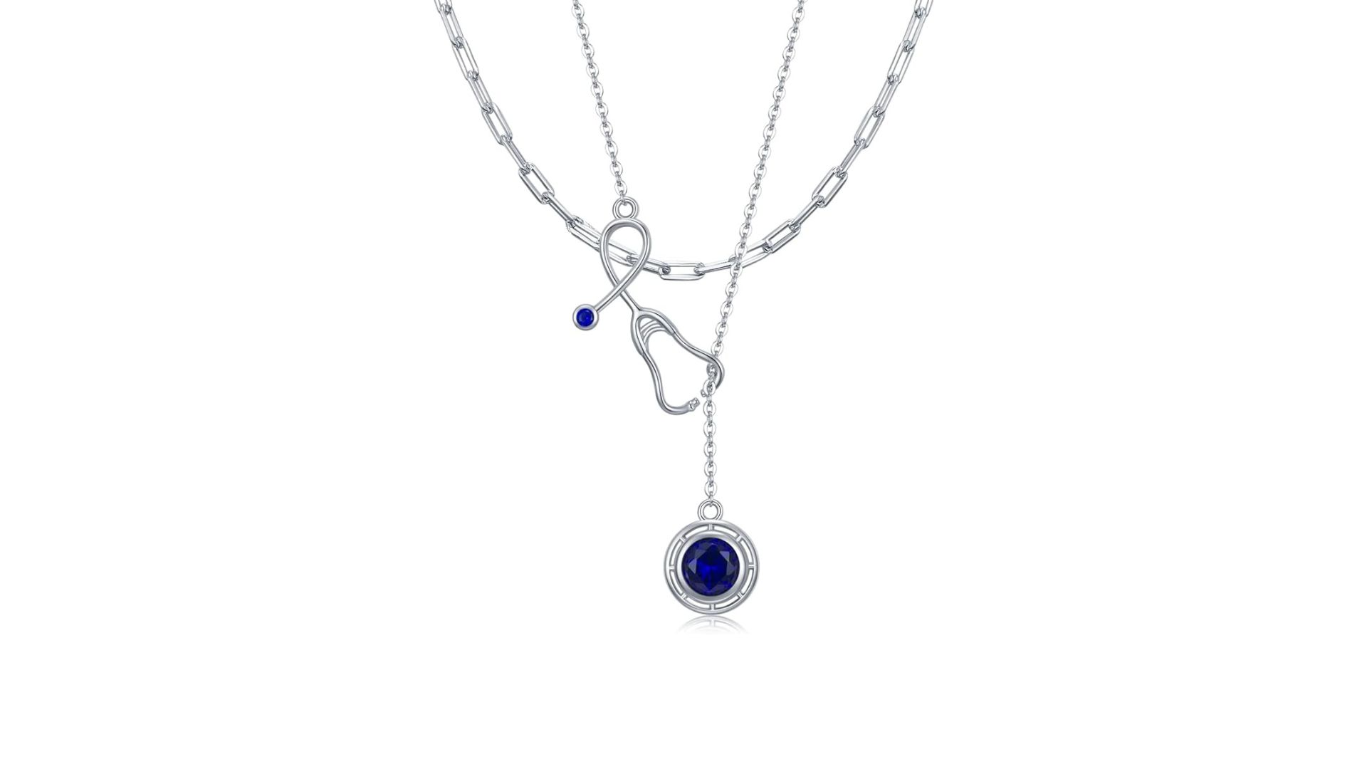 Nurse Stethoscope Necklace for Women Layered pendants feature multiple stethoscope charms of varying sizes, creating a dynamic and eye-catching design. This type is perfect for those who enjoy a more intricate and detailed look in their jewelry.
