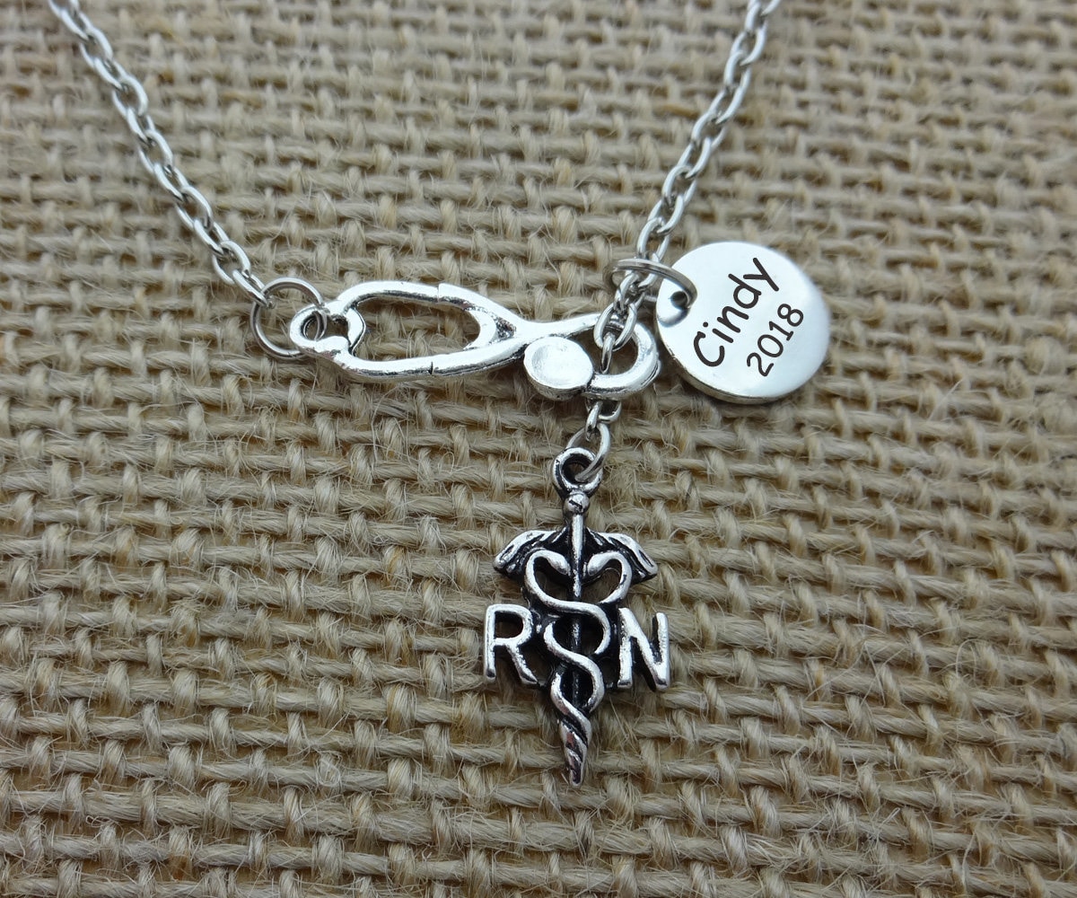 Nurse Caduceus Pendant Necklace With Stethoscope Medical The caduceus is a traditional symbol of medicine, featuring two snakes winding around a staff. A stethoscope pendant incorporating the caduceus adds a classical and symbolic element to the design, highlighting the wearer's connection to the healthcare field.